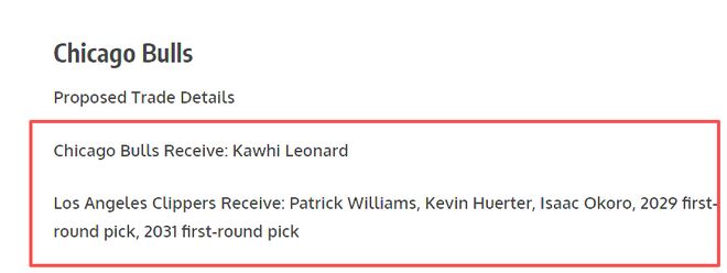 若公牛队能达成这笔交易,显然是希望在乔什·吉迪、武切维奇、怀特身边补充顶级战力。卡怀·伦纳德的加盟,将在攻守两端为球队带来季后赛级别的竞争力,打破公牛近年来缺乏攻守兼备的球星的尴尬局面。在账面上,由吉迪、武切维奇、科比·怀特与伦纳德组成的阵容具备极强的竞争力。对快船队而言,这笔交易则意味着球队走向年轻化重建:24岁的帕特里克·威廉姆斯本赛季场均7.6分;具备稳定投篮能力的许尔特本赛季场均11.9分、3.3个篮板,防守端颇具价值的艾萨克·奥科罗,再加上两个未来首轮选秀权,为快船开辟了全新的前进方向。这笔交易虽不亮眼,却不失为理智的选择。或许,加盟乔丹曾效力过的传奇公牛队,也会让伦纳德梦回巅峰。
