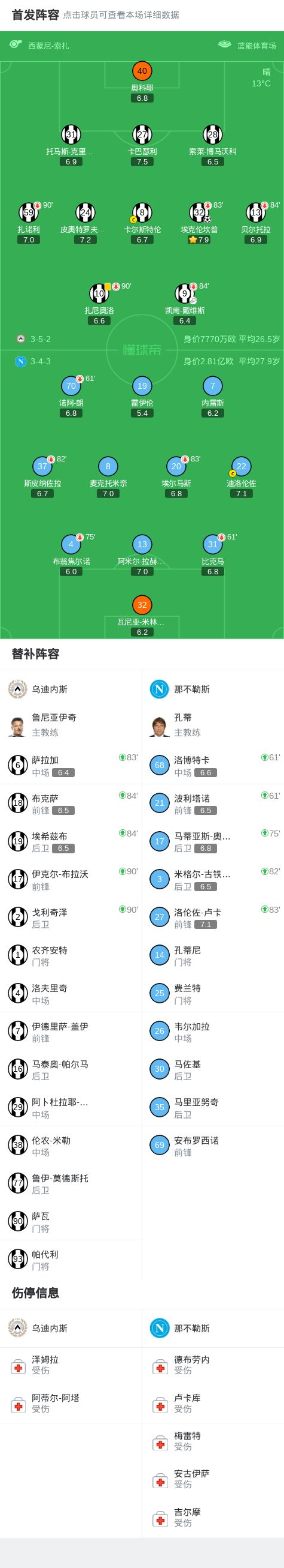 乌迪内斯两球被吹1-0那不勒斯,埃克伦坎普轰世界波