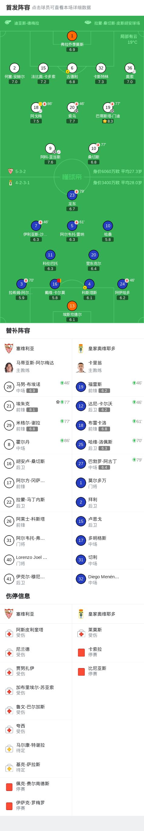 塞维利亚4-0大胜皇家奥维耶多,埃朱克、巴蒂斯塔-门迪破门