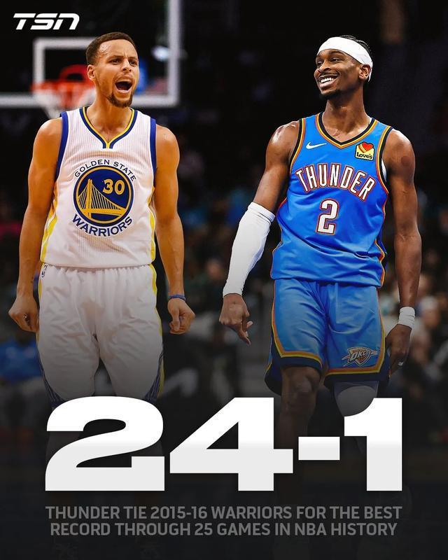 雷霆今天战胜太阳之后,已经拿到了搬到俄克拉荷马以来最长的16连胜,并且24-1负的战绩追平了15-16赛季的勇士创造的NBA历史最佳开局。打到这个份上,雷霆距离勇士的73胜已经不是能不能,而是想不想的问题了。
